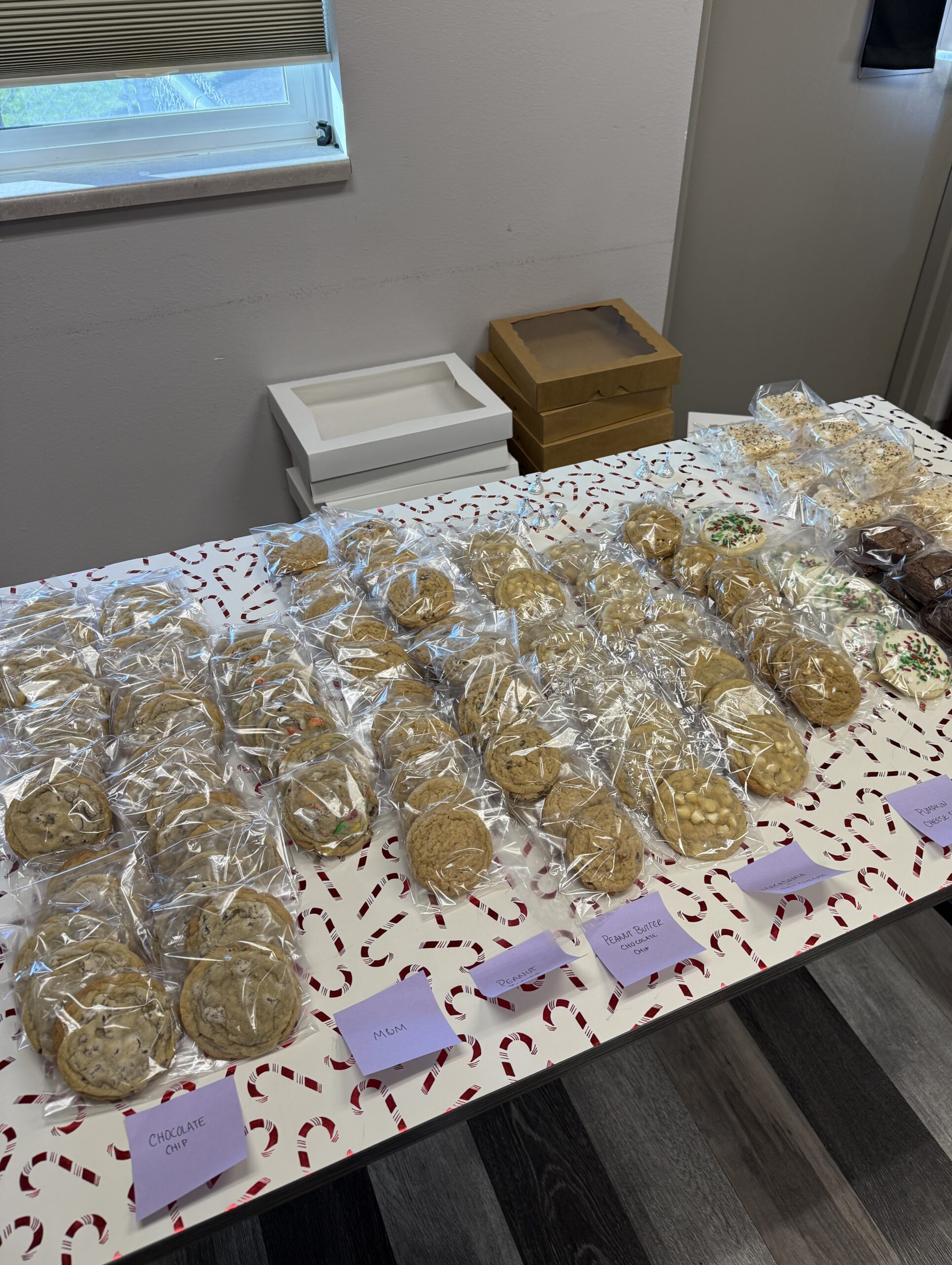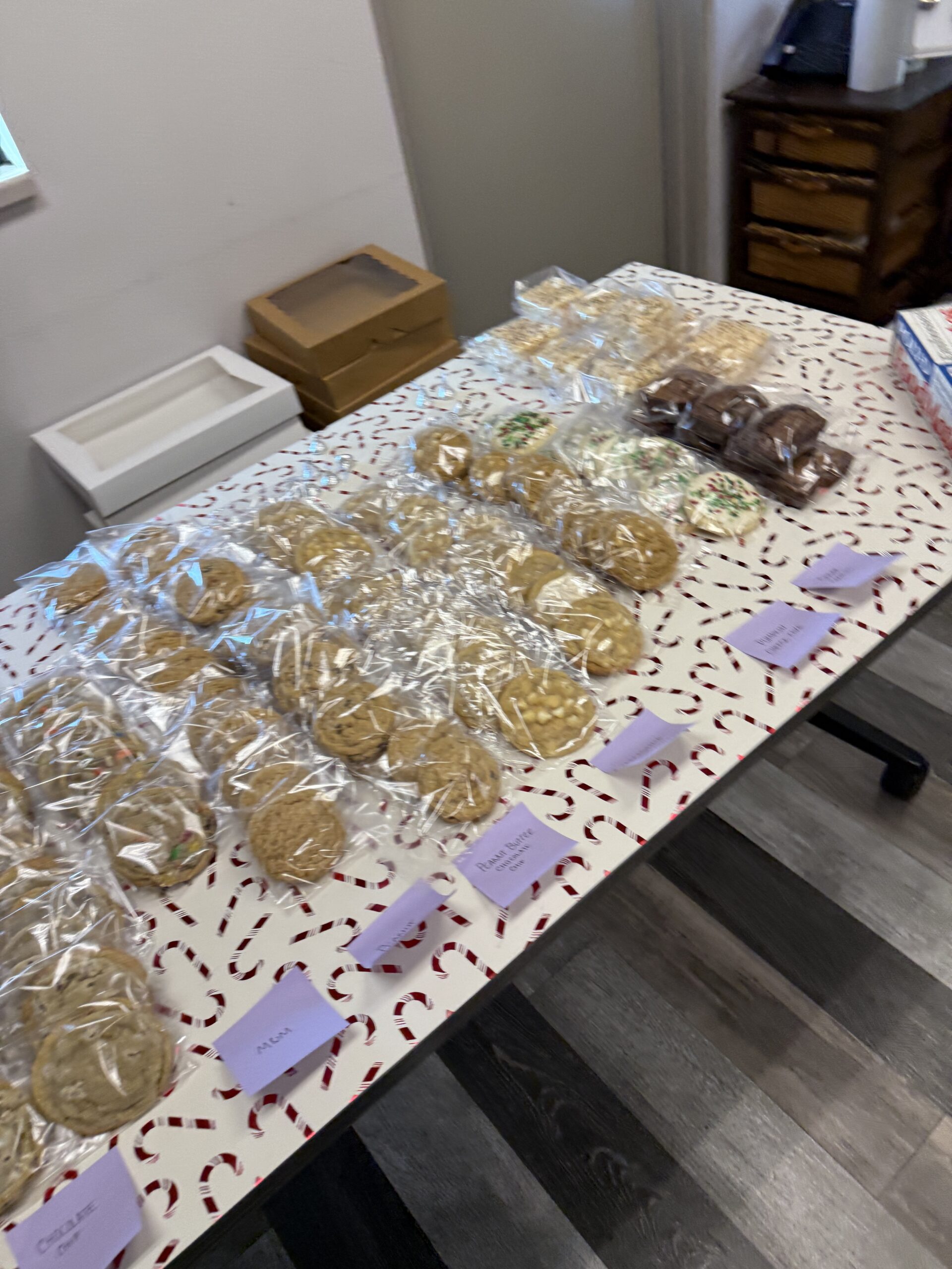 On Wednesday, we hosted our first Cookie Exchange! This was so much fun! Thank you, thank you, thank you to everyone who bought cookies, and also all of the incredible businesses and people who donated cookies. This includes: Viera’s, the Spudnut Shop, Tina’s Tasty Treats, Our Cookie House, Florecita’s Bakery, Grumpy Monkey Cookie Co., Brandi’s Bakes, Nothing Bundt Cakes, Crumbl, Ethos Bakery.